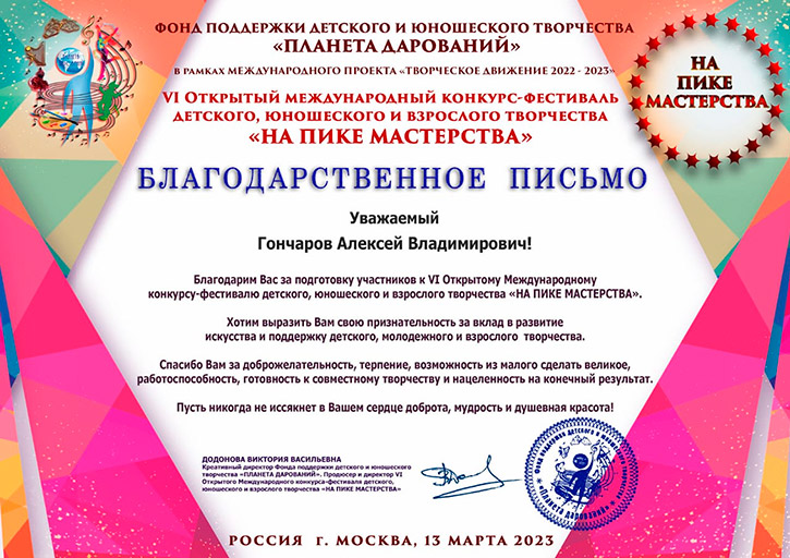 Обучающиеся принимают активное участие в разнообразных мероприятиях, включая исполнительские конкурсы и фестивали различного уровня. Преподавателями и студентами были получены следующие награды: