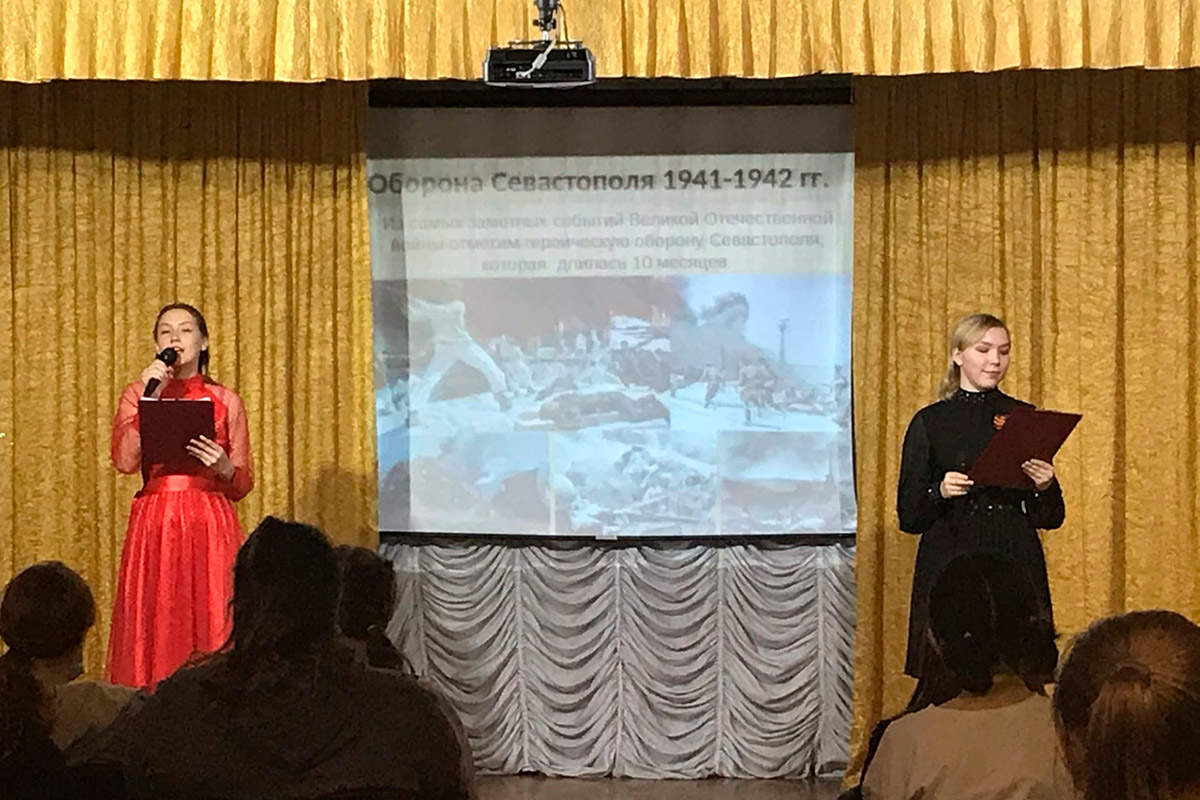 С целью воспитания достойных граждан, патриотов своей Родины, осмысление своей истории, проявление уважения к истории предков, формирование знаний о своем Отечестве, складывание эмоционально окрашенного внутреннего образа, воспитание готовности к восприятию тех или иных явлений национальной жизни и межэтнических отношений, 30 апреля на базе Барабинского филиала в актовом зале студентами 1, 2-х курсов и преподавателя истории и обществознания - Берш И.А. было проведено мероприятие, посвященное Дню воссоединения Крыма с Россией.