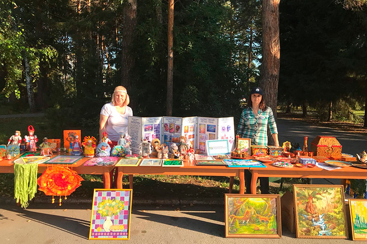 Барабинский филиал так же принял участие колонне с выставкой "Декоративно-прикладное искусство и народные промыслы". Преподаватели Балябкина В.А., Трубицина С.П. оформили 6 выставок творческих работ студентов специальности ДПИиНП, по квалификации художник мастер, преподаватель. Работы выполнены в различных технологиях: художественная роспись по дереву, валяние из шести, ткачество, роспись по ткани, народная кукла.