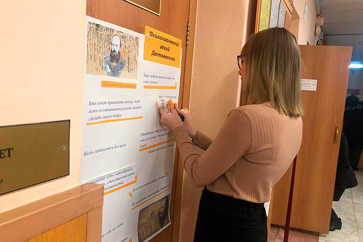 В течение дня проходила акция "Ваше любимое произведение Федора Михайловича!", благодаря которой выяснилось, что наиболее читаемое произведение Ф.М.Достоевского - "Преступление и наказание". Организованные студентами фотозона "Достоевский и его герои" и флешбук "Читаем Достоевского" позволили погрузиться в атмосферу произведений автора.