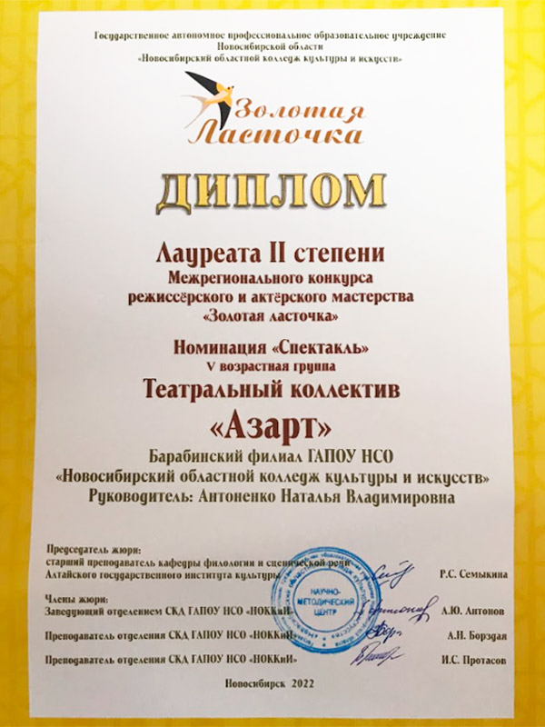 МЕЖРЕГИОНАЛЬНЫЙ КОНКУРС РЕЖИССЕРСКОГО И АКТЁРСКОГО МАСТЕРСТВА "ЗОЛОТАЯ ЛАСТОЧКА"