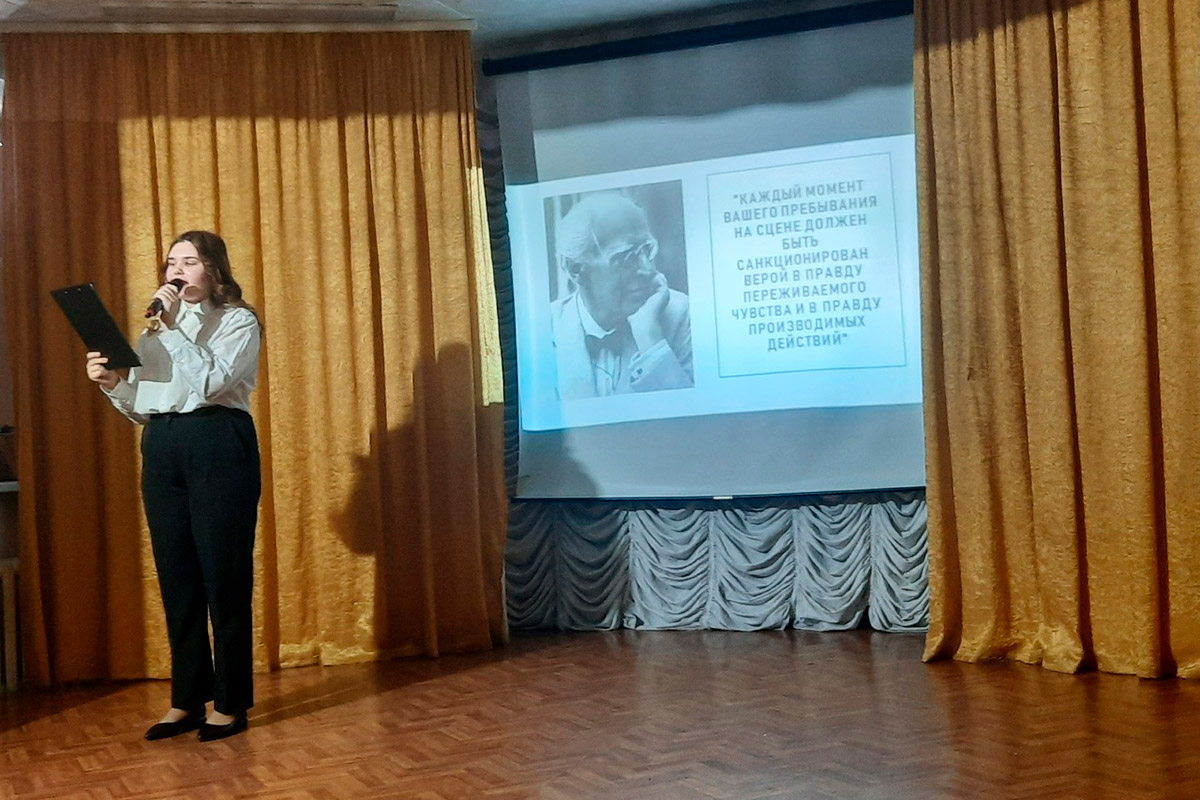 Студентов познакомили с творчеством именитого режиссера и его биографией, предложили посмотреть отрывки из постановок и ответить на вопросы викторин. Помимо дискуссии о жизни Станиславского, студентам рассказали об устройстве театра и творчестве знаменитых авторов и поэтов, воспевающих актерское мастерство. Особое внимание уделят театральному этикету.