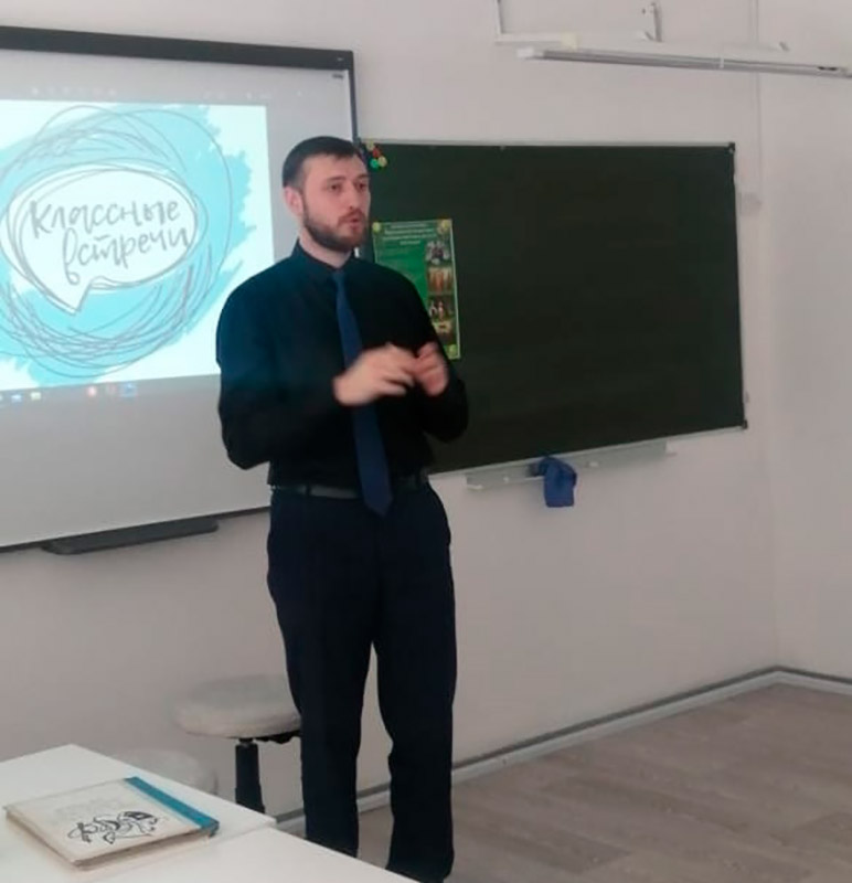 9 февраля коллектив филиала прибыл в МКОУ Зюзинская СОШ Барабинского района, где состоялась дружеская встреча с обучающимися школы. Преподаватель специальности "Сольное и хоровое народное пение" - Сотников Сергей Евгеньевич и студенты - Ларионова М. (СКД-17), Мыльников М. (НХТ-49), Шикеря К. (ПДО-24) приняли участие в "Классной встречи" "Российского движения детей и молодежи" в первичном отделении МКОУ Зюзинская СОШ Барабинского района.