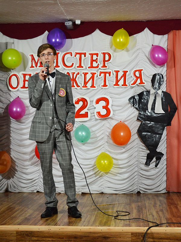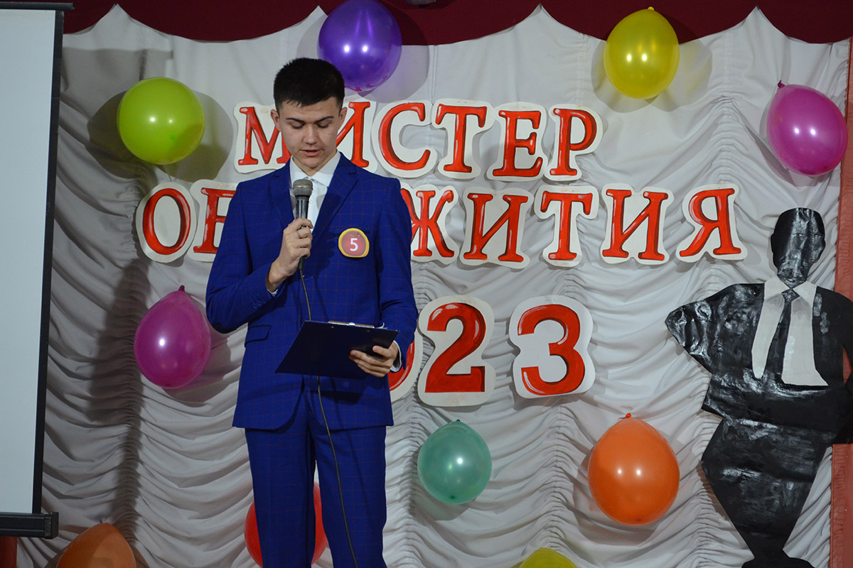Мероприятие, организованное воспитателями Берилло Е.В. и Шкуриной И.Д., студенческим Советом общежития, стало доброй традицией в общежитии. Завоевать звание "Мистер общежития-2023", участникам необходимо было порадовать жюри собственным артистизмом в визитной карточке, проявить навыки импровизации в конкурсе "Давайте познакомимся", знанием военной подготовкой "По старшинству" и даже проявить себя в качестве танцора и "Лучшего снайпера".