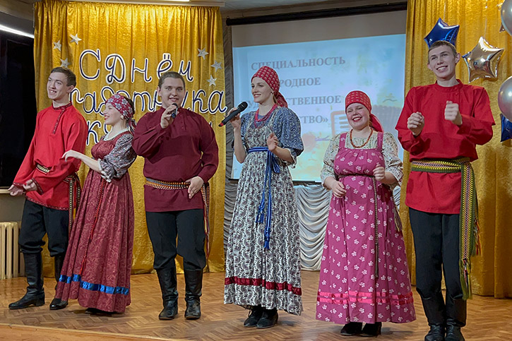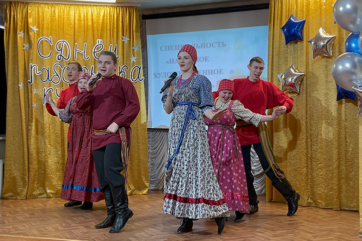В программе звучали добрые качества каждого преподавателя всех специальностей колледжа, народные, эстрадные песни, фольклорные наигрыши, песни о работниках культуры в исполнении студентов всех специальностей.