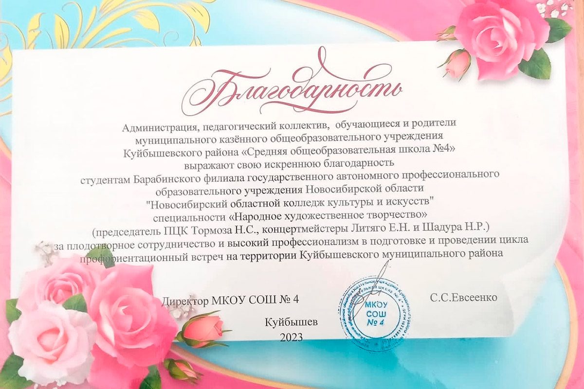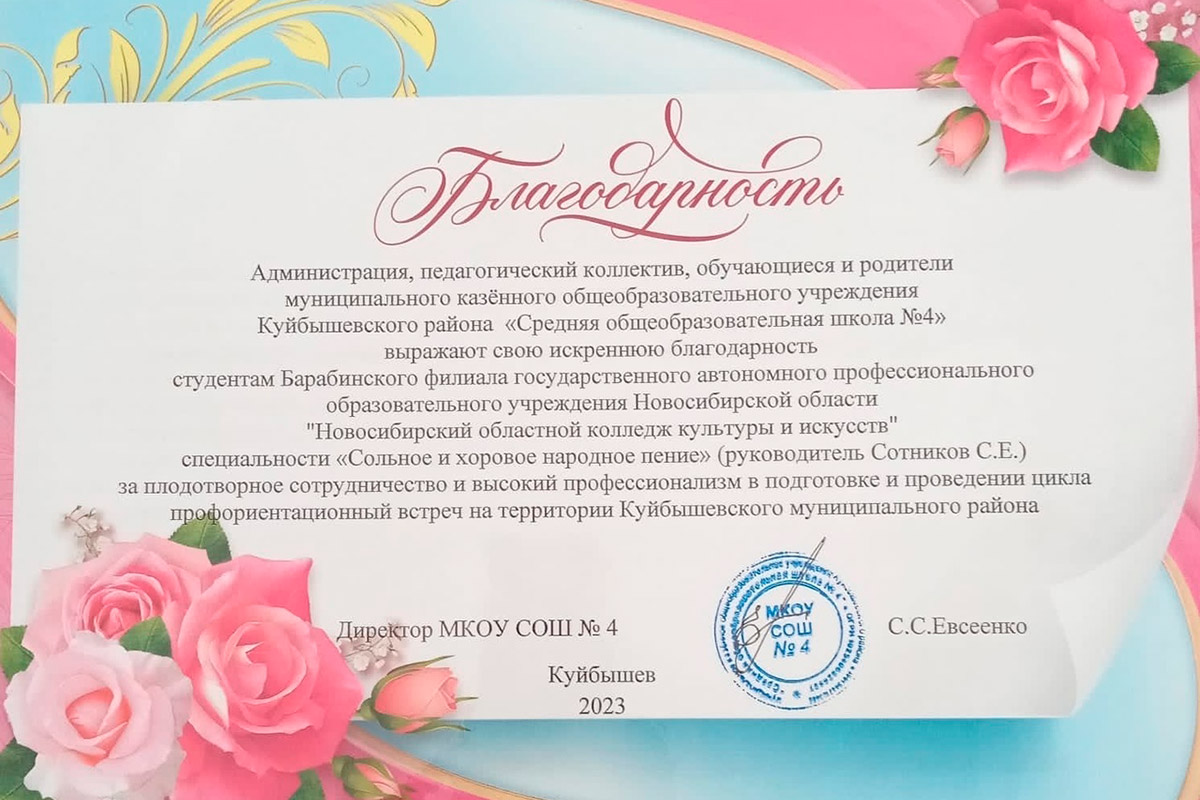 6 апреля 2023 на площадке МКОУ СОШ г.Куйбышева состоялся благотворительный концерт "Za наших!", где приняли участия студенты Барабинского филиала "НОККиИ":