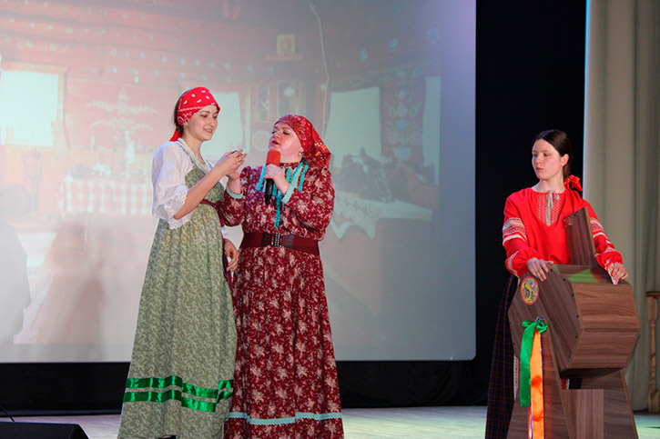 Руководитель образцового ансамбля народной песни "Ладушка" "Культурно-досуговый центр" Куйбышевского района - Замашистая Т.В., и студенты-практиканты 39 группы специальности "Народное художественное творчество" (рук. Тормоза Н.С.) и 21 группы специальности "Сольное и хоровое народное пение" пригласили на семейную вечёрку всех желающих и позволили прикоснуться к русской народной культуре. В фойе встречу гостей украсила веселая матрёшка и гармонист. В этот вечер все гости стали участниками беспроигрышной лотереи. Все собравшиеся в зале весело поиграли в народные игры: "Золотые ворота", "Дударь", и, конечно, приняли участие в танцах "Подгорная", "Во саду ли в огороде".
