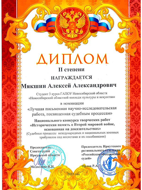 ПОБЕДИТЕЛИ В НАЦИОНАЛЬНОМ ТВОРЧЕСКОМ КОНКУРСЕ РОССИЙСКОГО ОБЪЕДИНЕНИЯ СУДЕЙ "ИСТОРИЧЕСКАЯ ПАМЯТЬ О ВТОРОЙ МИРОВОЙ ВОЙНЕ"