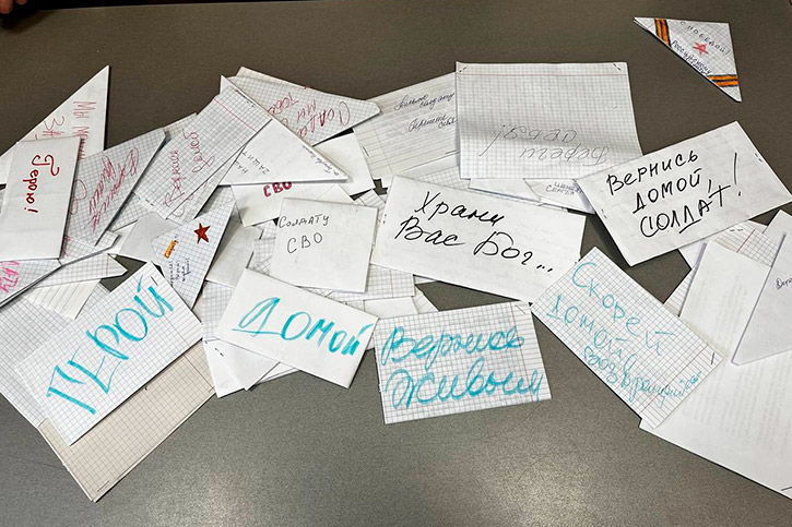 Студенты рассказали о себе, о своих мечтах и планах, что они гордятся настоящими защитниками Родины и желают им скорейшего возвращения домой. Также в письмах звучали пожелания сил, здоровья и стойкости нашим защитникам, и конечно - слова благодарности за мужество, героизм и мирное небо, которое они защищают.