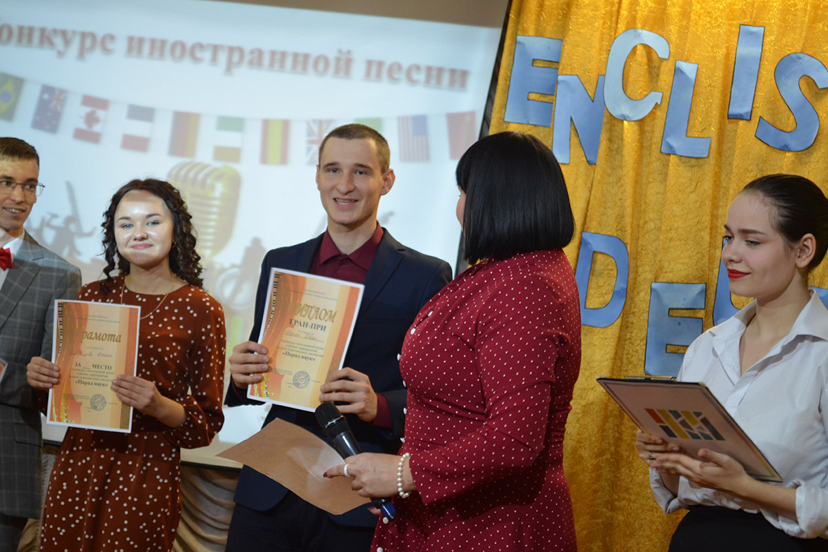 Традиционно завершает неделю "Парад наук" песенный конкурс на иностранных языках "Song’s contest". Студенты 1,2,3 курсов специальностей ПДО и СИХНП на протяжении двух недель готовились к выступлению с песнями на английском, немецком и татарском языках.