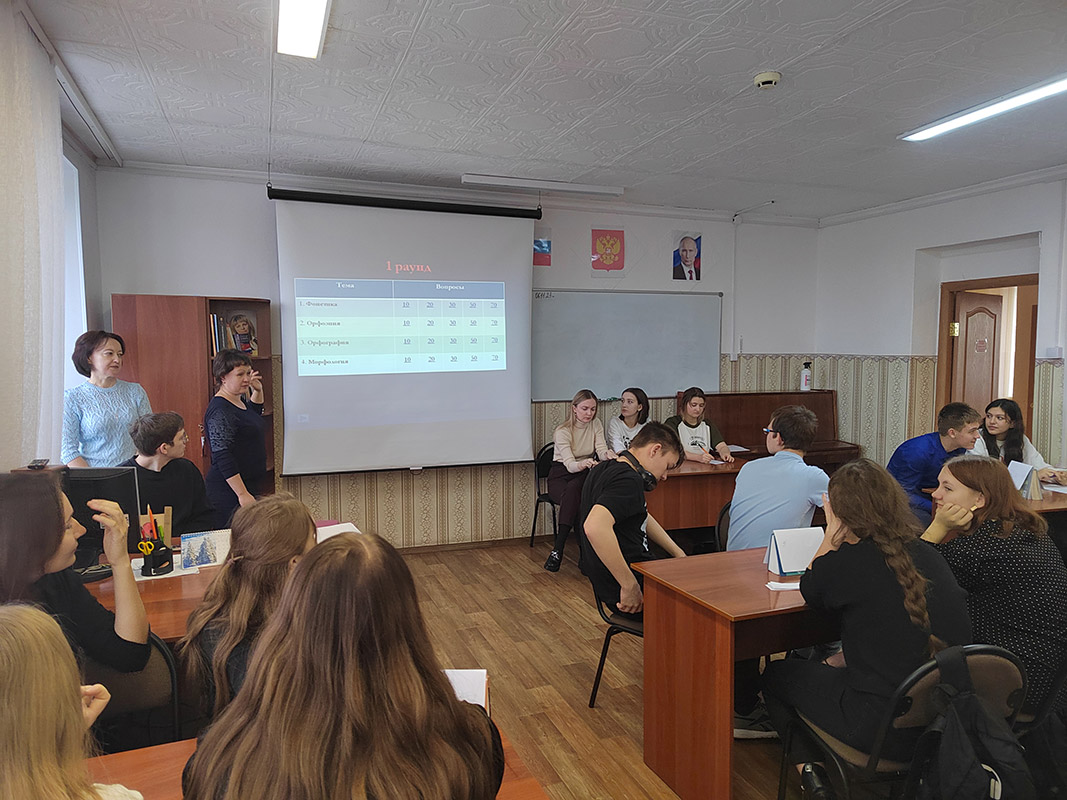 Следующим этапом проведения Дня стала интерактивная игра "Своя игра" "Знатоки русского языка". Студенты вспомнили такие разделы науки о языке, как: фонетика, орфография, орфоэпия, морфология. Больше всего учащимся понравились задания 2 раунда: "Великие имена России" и "Названия произведения по смайлам". Стоит отметить, что участники игры отвечали на довольно сложные вопросы. Подготовка к ответу требовала эрудиции, смекалки и логического мышления. В упорной борьбе победу одержала команда студентов "Сольное и хоровое народное пение". Студенты показали хорошие знания, умение работать в группе, проявили гибкость ума и находчивость. Несмотря на результат, все ребята получили удовольствие от игры и общения.