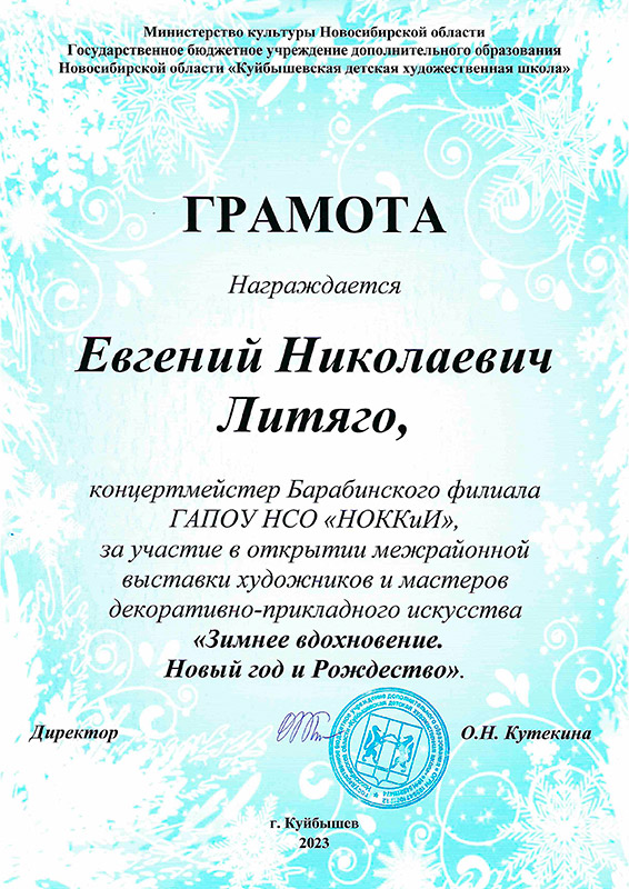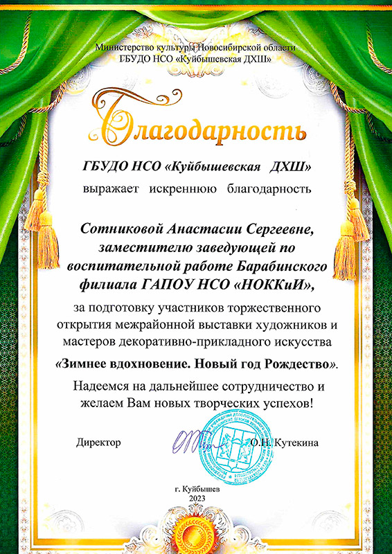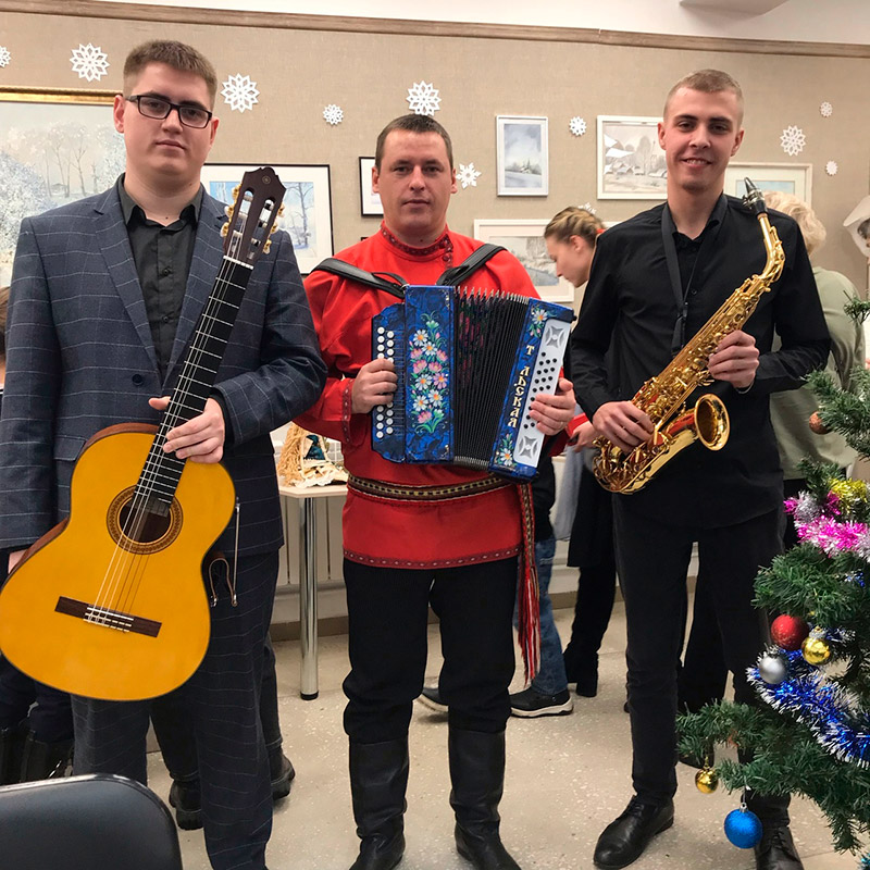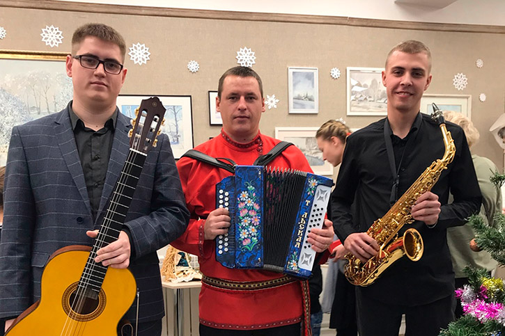 Студенты специальности "Педагогика дополнительного образования" Алексей Мякшин и Данила Быков, преподаватель специальности "Народное художественное творчество" Литяго Е.Н. стали участниками открытия традиционной межрайонная выставка мастеров декоративно-прикладного творчества "Зимнее вдохновение. Новый год и Рождество" в Детской художественной школе Куйбышевского района.