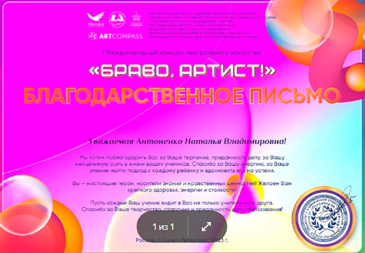 Режиссер-постановщик-преподаватель специальности "Социально-культурная деятельность" - Антоненко Н.В.