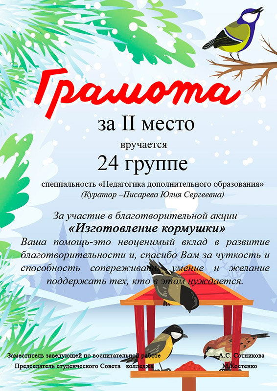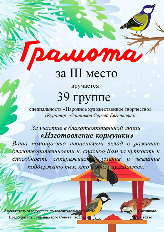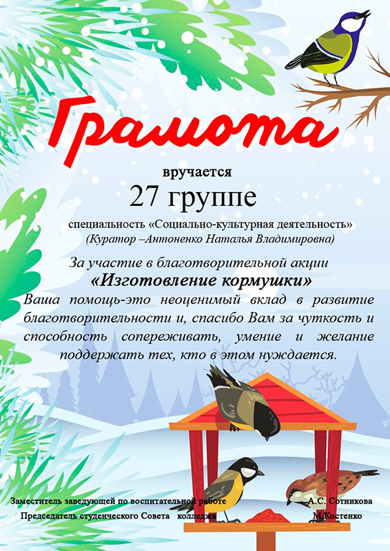 1 декабря на территории колледжа и общежития устроили настоящий праздник для пернатых!