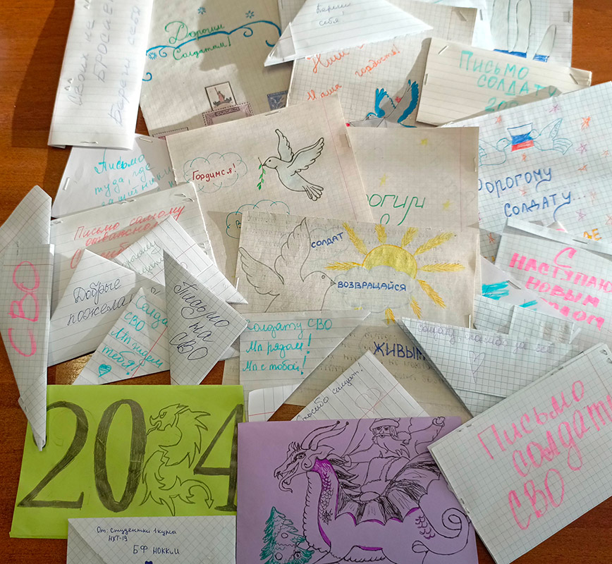 У некоторых из студентов отцы, братья, мужья, друзья сейчас в зоне боевых действий, многие ушли по мобилизации, а так же и добровольцами. В своих письмах ребята благодарили бойцов за мужество и отвагу.