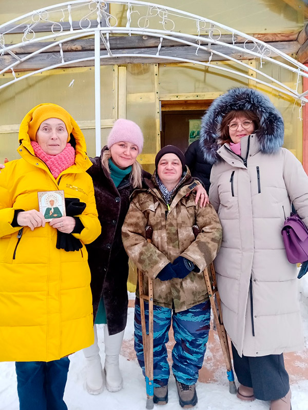 Побывали в гостях у Харина Евгения Геннадьевича. Он рассказал нам о чуде, которое с ним произошло. Евгений перенес много операций, еще в детстве ему поставили диагноз "генетическое заболевание", и он не мог нормально передвигаться, только с помощью костылей. Но однажды ему в руки попала книга о Блаженной Матроне Московской. Прочитав ее, нашел для себя новый смысл. Ни один доктор не мог помочь, а Матрона помогла. Первым делом он решил отблагодарить святую и построить в честь ее часовню.