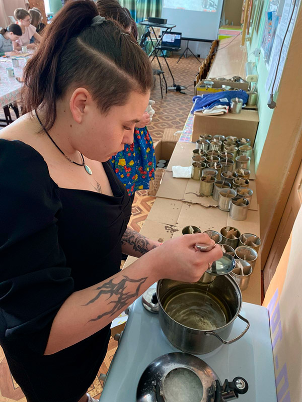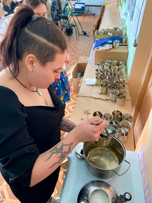 У свечи можно погреться, подсушить обувь, разогреть еду. Изготовленные студентами свечи в ближайшее время будут отправлены солдатам в зону СВО.