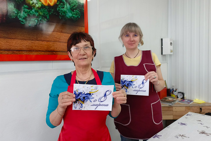 В преддверии Международного женского дня Администрация города Барабинска и студенты - волонтеры Барабинского филиала "НОККиИ" поздравили прекрасный женский пол с праздником и вручили им открытки.