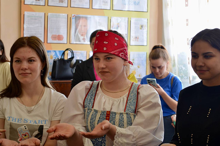 Студенты 2 курса под руководством С.М.Мисьянкиной провели фольклорно-игровую программу, в ходе которой познакомили всех собравшихся с русскими народными играми и танцами.