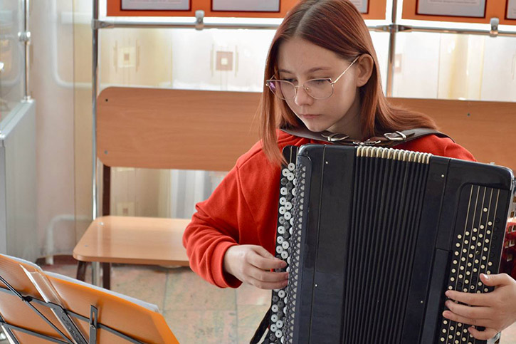 А в перерывах между учебными занятиями каждый желающий мог насладиться игрой на народных инструментах в исполнении наших юных музыкантов.
