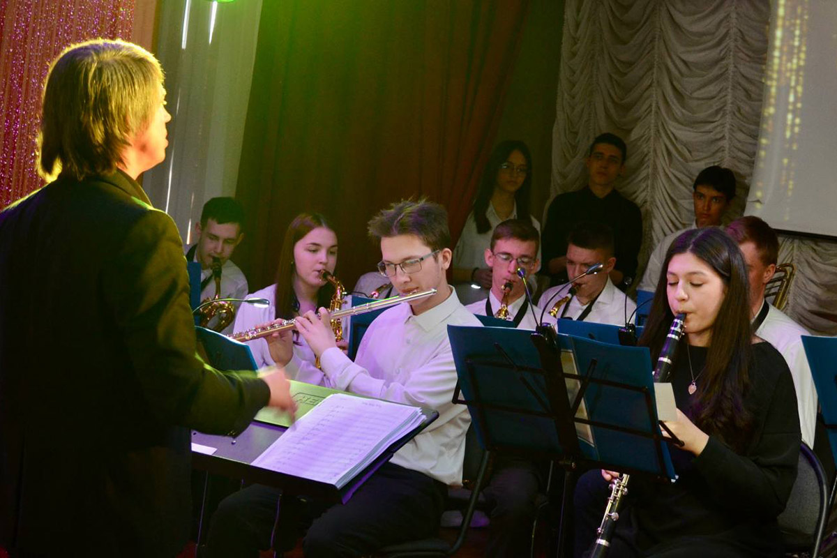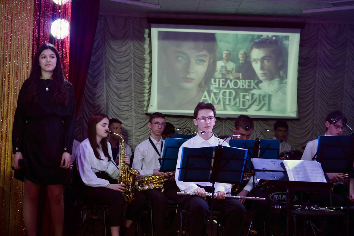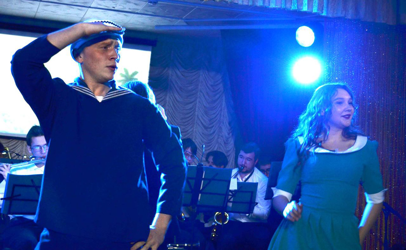 В программе вечера в исполнении учебного эстрадно-духового оркестра (руководитель - А.В.Гончаров) прозвучали инструментальные и вокально-инструментальные композиции из репертуаров американских диксилендовых оркестров, а также любимые советские мелодии в джазовых аранжировках.