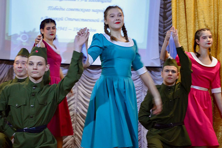 Со сцены звучали песни о далёкой войне и современные музыкальные произведения героико-патриотической направленности.