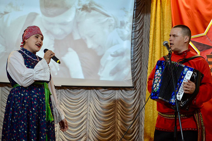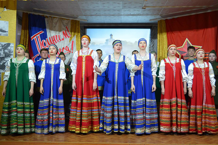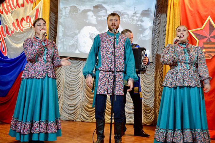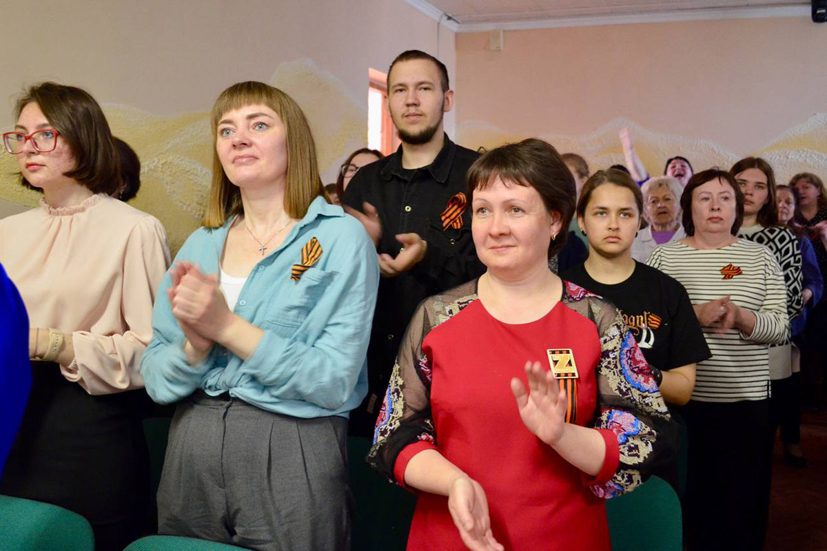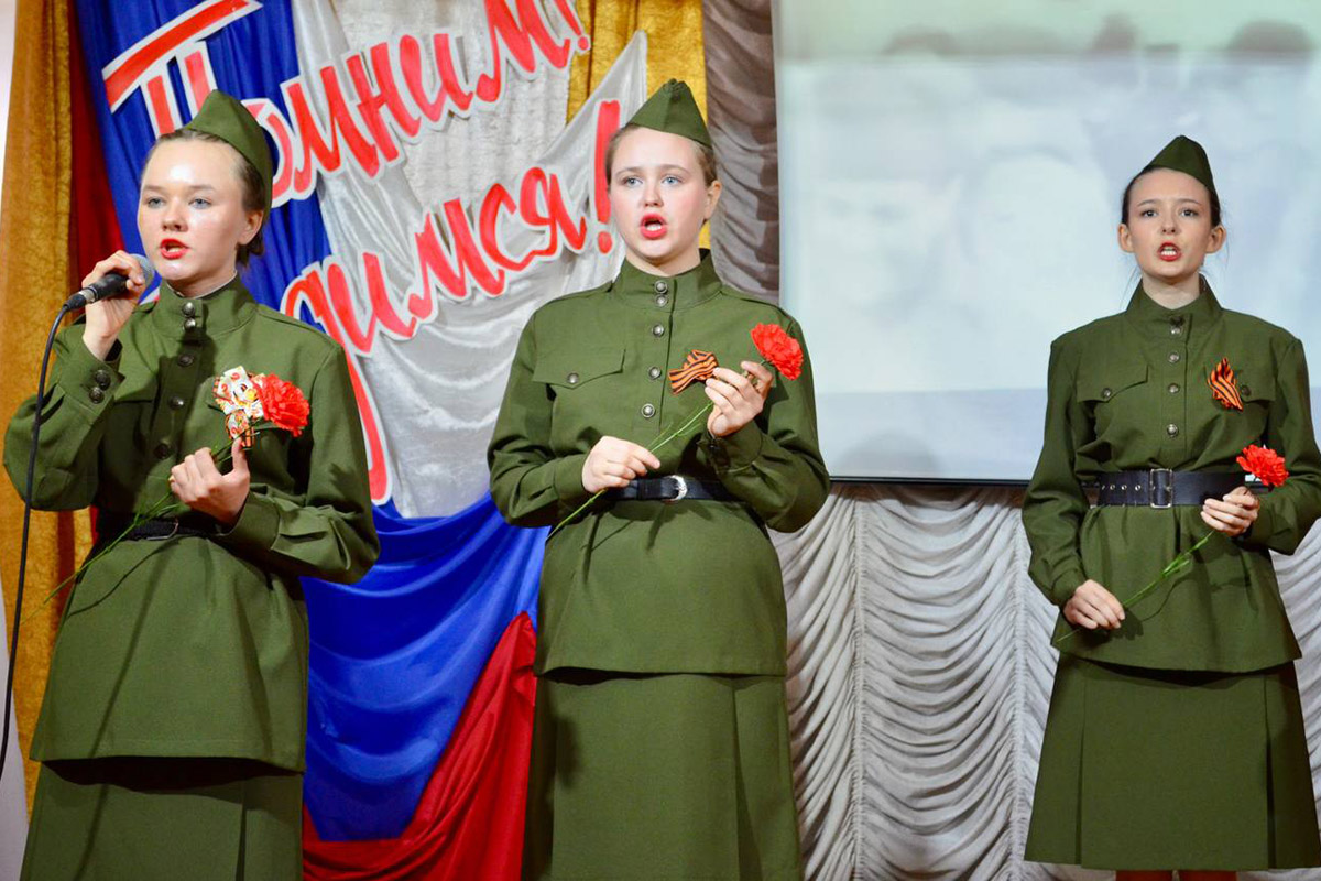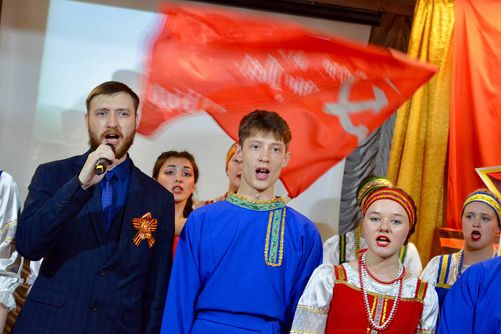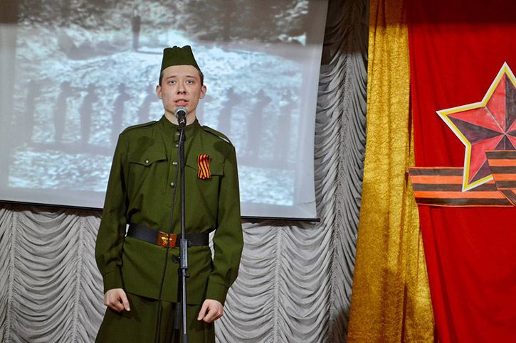 Во время концерта на экране шла специально подготовленная видеохроника, вобравшая в себя военные фотографии и видеоархивы. Студенты и преподаватели смотрели за происходящим, затаив дыхание и наполняясь любовью к Родине, благодарностью к тем, кто отстоял свободу нашей страны, а также чувством единения перед новыми угрозами.