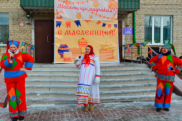 Артисты подготовили для школьников настоящее театрализованное представление, главными героями которого стали озорная Масленица и другие колоритные персонажи. Веселые скоморохи, хитрая лиса и лишенный хитрости волк, и, конечно же, зима, которая не хотела уступать свои права, и другие сказочные герои вовлекали ребят в хороводы, игры и конкурсы.