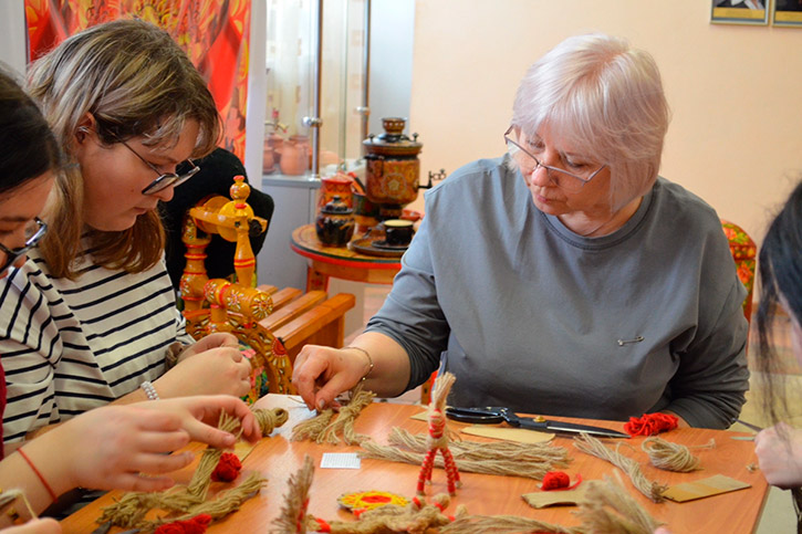 Помимо театрализованного представления, преподаватель специальности "Декоративно-прикладное искусство и народные промыслы" В.А.Балябкина провела для всех желающих мастер-класс по изготовлению оберега "Солнечный конь". Каждый конь получился уникальным и неповторимым, наполненным теплом и любовью.
