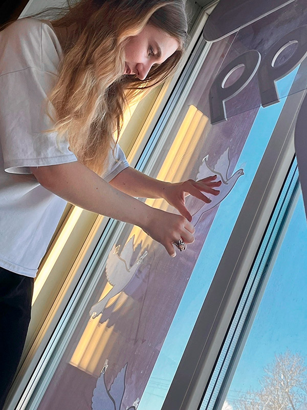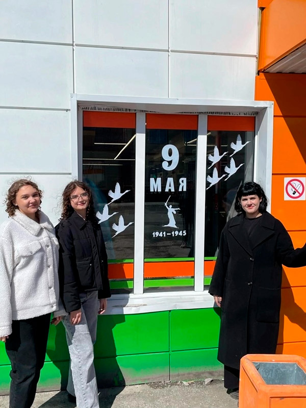 На окнах появились изображения цветов, вечного огня, голубей мира и многих других символов, связанных с Победой. Это стало своеобразной данью уважения и благодарности тем, кто сражался за нашу свободу и мирное небо над головой.