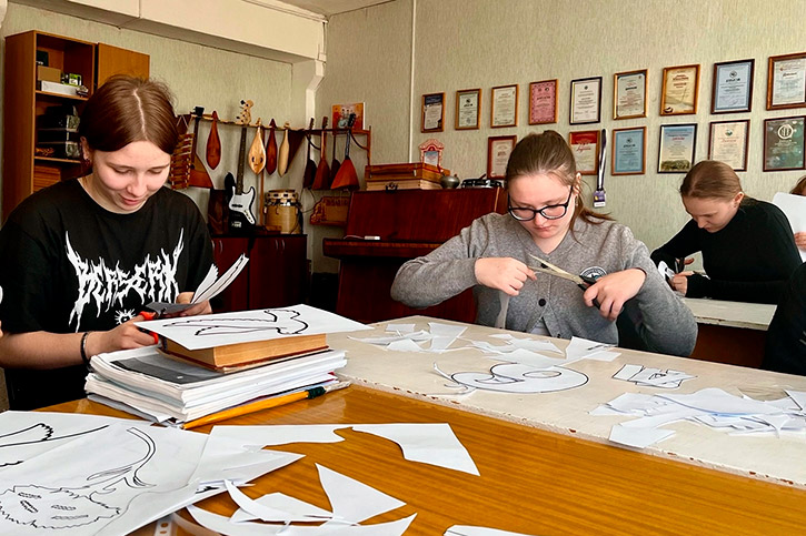 Студенты колледжа украсили окна супермаркетов "Пятёрочка" и "Монетка" тематическими вырезанными символами Победы. Каждый элемент наполнен глубоким смыслом.