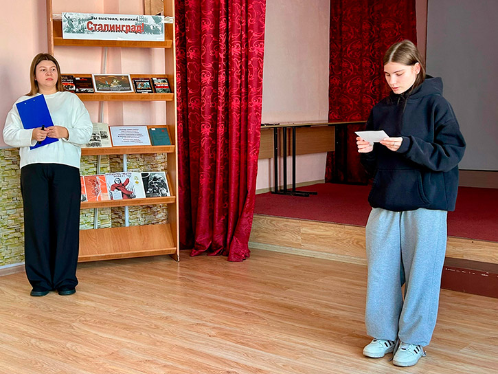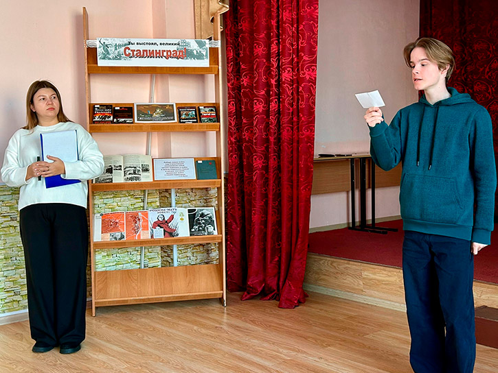 В рамках цикла мероприятий, посвящённых сохранению исторической памяти, студенты Барабинского филиала НОККиИ посетили Центральную районную библиотеку, где для них было организовано специальное мероприятие, посвящённое Сталинградской битве.