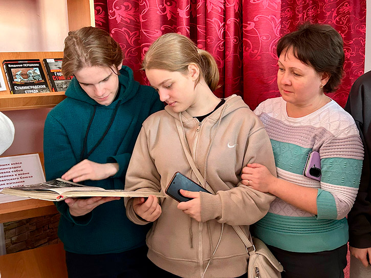 Особый интерес вызвало знакомство с печатным фондом: студенты ознакомились с выставкой книг, посвященных Сталинграду, где были представлены как документальные свидетельства, так и художественная литература о героизме солдат.
