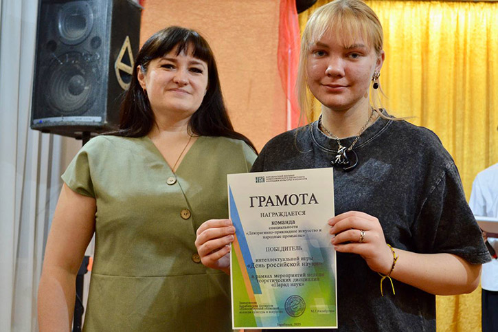 Интеллектуальная игра "День российской науки". В этом состязании первенство завоевала команда студентов 1 курса специальности "Декоративно-прикладное искусство и народные промыслы".