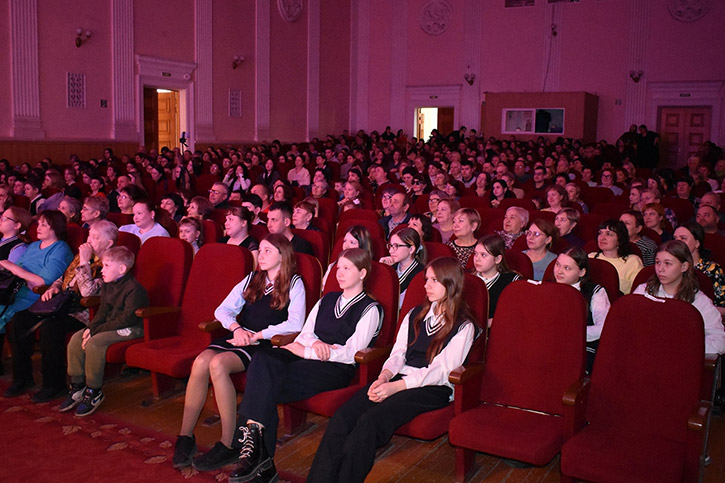Среди многочисленных зрителей, заполнивших зал, были студенты Барабинского медицинского колледжа, учащиеся РЖД-лицея, сотрудники железнодорожной больницы, сотрудники Барабинского краеведческого музея, сотрудники Центральной районной библиотеки, ветераны, волонтеры, выпускники, родители студентов БФ НОККиИ, жители и гости г.Барабинска.