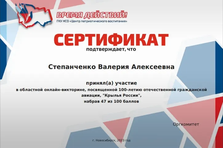 ОНЛАЙН-ВИКТОРИНА "КРЫЛЬЯ РОССИИ"