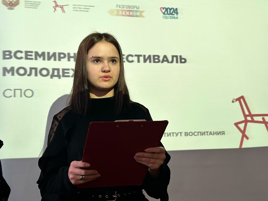 Куратор Н.С.Тормоза и студенты группы НХТ-19 подготовили занятие "Всемирный фестиваль молодежи", посвященное уникальному и масштабному событию, которое состоится в нашей стране, – Всемирному фестивалю молодежи. Ведущие подчеркнули, что фестиваль имеет огромное значение для всей нашей страны, поскольку позволяет выстраивать связи между молодыми и активными людьми со всей планеты, которым предстоит вместе строить общее будущее - справедливый многополярный мир.